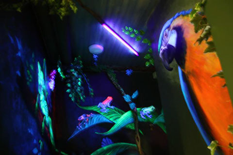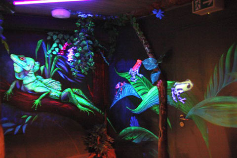 Drachen und Pfeilgiftfrösche im Schwarzlichtflur